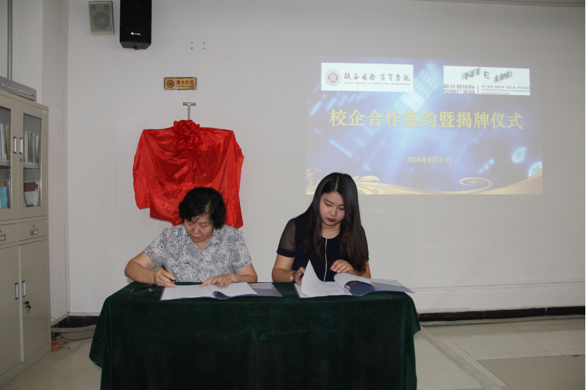 8月31日下午,陕西国际商贸学院与西安新丝路国际电商产业园校企合作协议签约和揭牌仪式在国际经济学院步长西咸经济研究院会议室举行,西安新丝路国际电子商务产业园企划部王雨晨总监,国际经济学院院长韦林珍教授、院长助理冯明、电商系主任刘志文、经贸系副系主任赵丽红等老师参加了仪式。仪式由冯明主持。
