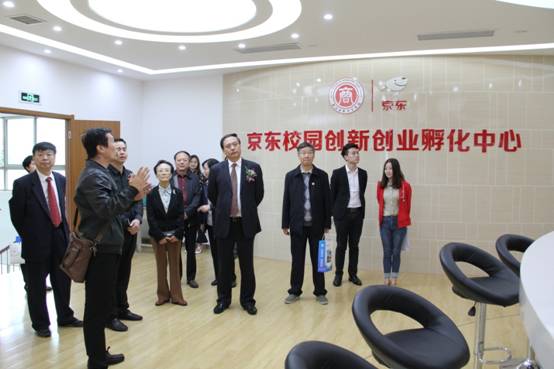 2017年9月26日陕西国际商贸学院京东校园创新创业孵化中心揭牌仪式在陕西国际商贸学院隆重举行。京东全国客户服务中心党委书记、人资行政总监汪世龙先生、京东全国客户服务中心校企合作总经理杨程先生、京东全国客户服务中心校园生态总经理唐慧女士、京东全国客户服务中心校企合作经理王甫威先生、京东全国客户服务中心校企合作区域经理朱韦嘉先生、陕西国际商贸学院董事长赵超、执行董事王立新、党委书记赵军政、副校长黄新民、副校长徐唯诚、副校长杨忠林、校长助理李吉友和国际经济学院院长韦林珍等参与揭牌仪式并前往中心视察工作。