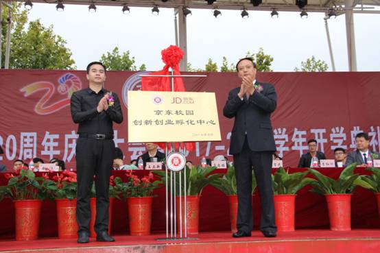 赵超董事长与京东汪世龙总监共同为陕西国际商贸学院京东校园创新创业孵化中心揭牌