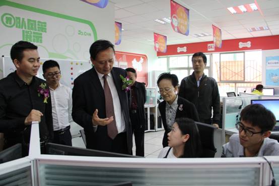 随后,双方领导考察了中心。董事长在考察中指出产教融合、校企合作是推动应用型人才培养质量的重要抓手,此次和京东共建的全球首家京东校园创新创业孵化中心,是理论的真实落地。双方今后应该多加强沟通和交流,不断优化现有项目,积极引进开创性项目,不断提升人才培养质量。希望中心管理者要加大宣传力度,积极扩大中心的服务面向和受益面,将京东先进管理理念和文化植入中心,让更多的同学能够进入中心进行体验和提升,不断优化思维方式和提升创新创业能力。希望更多企业入驻学校,把学校打造成一个拥有品牌影响力的特色民办高校。最后希望大家心怀梦想,砥砺前行!