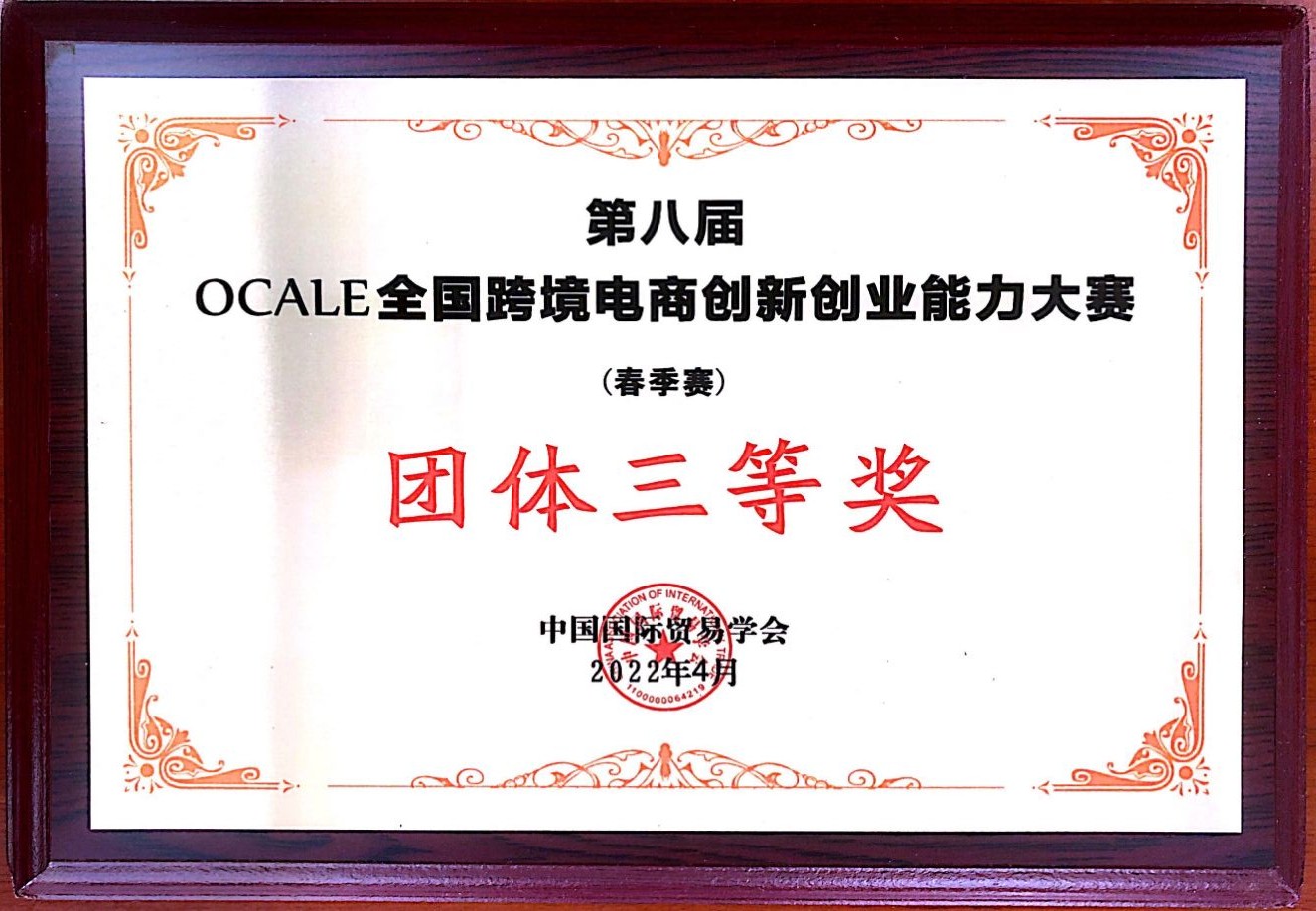 2022年第八届OCALE 全国跨境电商创新创业能力大赛(春季赛)团体三等奖