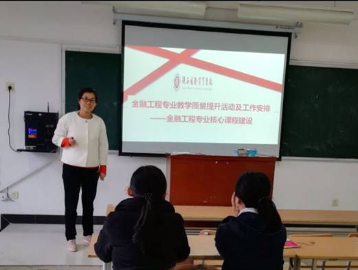 会上,系主任张丽老师围绕研讨主题给全系教师系统介绍了金融工程专业核心课程体系的建设概要,并提出两点自己对于课程建设的设想:一是证券投资学与金融风险管理及其相应的实训课程是今后教学的难点和重点,要攻克难关需要全体老师共同努力,希望各位老师自行可以进行股票的模拟操做,熟悉证券投资技巧,多关注财经视讯,市场行情,并丰富自己的教学案例库;二是需要提升金融的综合技能,发展金融数学,计算机编程等学科,真正将金融工程专业做精做准,培养出金融复合型人才。