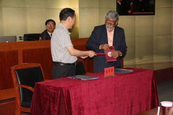 签约仪式后,默罕迪教授向全校师生作题为“印中两国在亚洲经济一体化进程中的作用”的报告。