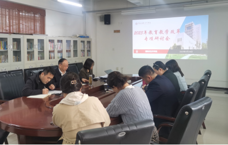 为了提升我院教育教学水平,紧盯重点难点问题,推进大改革,产出大成果。我院于3月28日下午召开2023年教育教学改革专项研讨会。我院执行院长冯明、党总支副书记荣超、专家教授罗能勤、学院办公室以及各教研室共计8人参加了会议。
