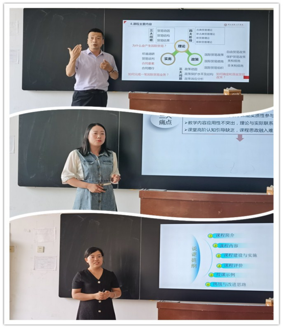 冯明老师进行《国际贸易理论与实务》的说课展示。他围绕学情分析、教学目标、教学内容、教学重难点、教学方法与教学评价等内容,引导学生要深入理解理论与实践的关系。