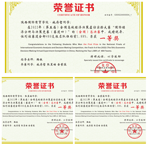 我们团队在2022年(第五届)全国高校经济决策虚仿实验大赛赛道四:国际经济分析与决策竞赛中通过了校赛、区域赛、数据分析报告提交(对区域赛的比赛过程及其结果进行复盘分析)、决赛等环节,从5月比赛筹备,到6月校赛、区域赛,再到8月份提交数据分析报告,最后到9月全国决赛,历时长达4个月,最终获得一等奖。