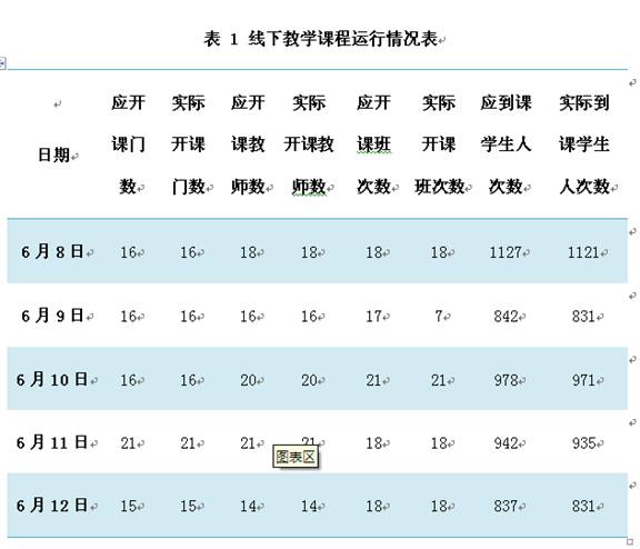 6月6日—12日,国际经济学院第十六周计划开出课程84门次,实际开出课程84门次,课程开出率为100%。92个班次的教学任务全部顺利完成,完成率 100%。总体运行情况具体见表 1。
