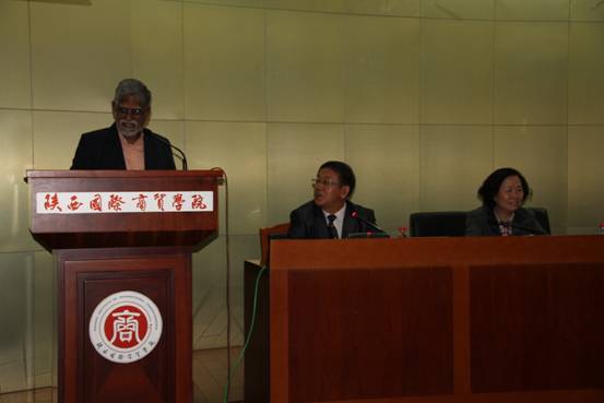 2015年5月21日下午,陕西国际商贸学院在学术报告厅二楼举行客座教授聘任仪式暨学术报告会。学校聘任印度德里大学政治经济学教授、博士生导师默罕迪为我校客座教授。副校长黄新民教授、人力资源处阎侃厚处长、科研处王振亚处长、默罕迪教授及其夫人毕迪尤特默罕迪博士等领导和嘉宾出席了聘任仪式。聘任仪式由国际经济学院院长韦林珍教授主持。
