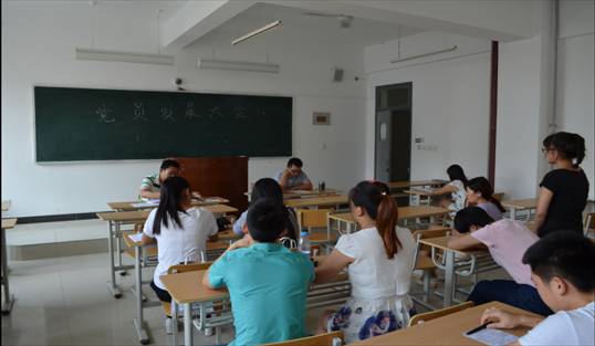 2015年7月6日下午,国际经济学院学生党支部在2号教学楼324教室召开发展预备党员大会,此次会议主要研究和讨论唐树文、李岙琦等16位同学的入党问题,大会由党支部书记荣超老师主持,全体党员参加。