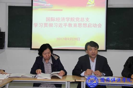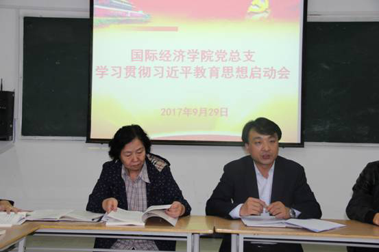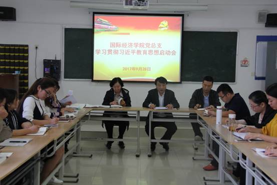 2017年9月29日下午16:30,国际经济学院党总支在2J320多媒体教室召开学习贯彻习近平总书记就教育思想启动会,学院院长韦林珍、党总支副书记张孝峰、院长助理冯明以及全体师生党员参加了会议,会议由学院教工党支部书记张艳主持。