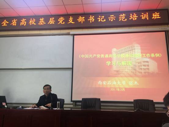 2017年3月27日至31日,省委高教工委在陕西教育干部培训西安石油大学基地培训中心举办了全省高校基层党支部书记示范培训班。我院教工党支部书记张艳参加本次培训。