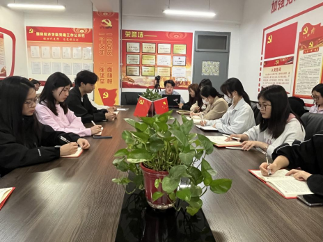 为深入开展学习贯彻习近平新时代中国特色社会主义思想主题教育,贯彻落实好党的二十大战略部署,国际经济学院学生党支部于5月21日晚在党员活动室进行第二次集中学习。本次专题学习由学生党员董新鹏主持,国际经济学院全体党员参加。