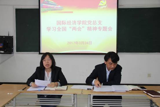 会上,教工党支部书记张艳同志传达了2017年全国两会精神,并通过十大热点关键词,重点解读了李克强总理所作的《2017年两会政府工作报告》,并就教师关心的政治、经济和民生问题进行了分析和解读。她指出,各党小组和党员同志要通过多种形式加强对两会精神的学习和解读,深刻领会两会的精神实质和丰富内涵,紧密围绕学院的中心工作,着力做好各项工作的有效落地,推动学院的科学发展。