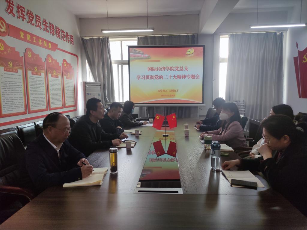 11月21日上午,国际经济学院党总支组织召开学习贯彻党的二十大精神专题会,学院党总支全体委员、各教研室主任参加会议,党总支副书记荣超主持会议。