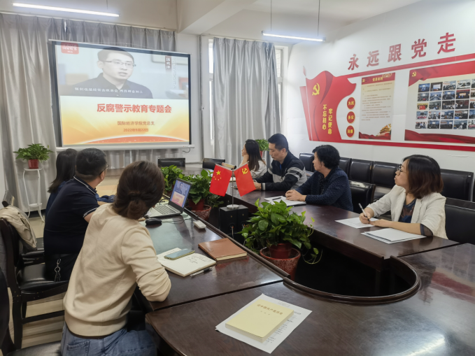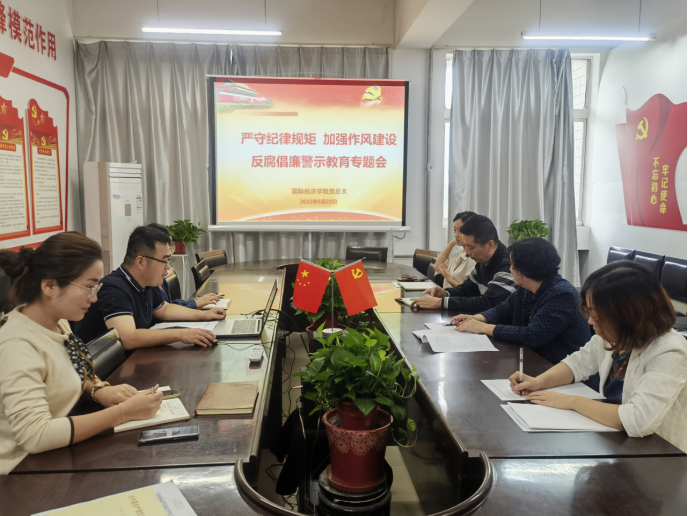 为进一步推进纪律教育学习宣传月活动深入开展,增强党员干部廉洁从政意识,筑牢拒腐防变的思想防线,9月22日下午,国际经济学院党总支组织召开反腐倡廉警示教育专题(扩大)会议。总支委员、支部书记、各系办负责人参加会议,大会由总支副书记荣超主持。