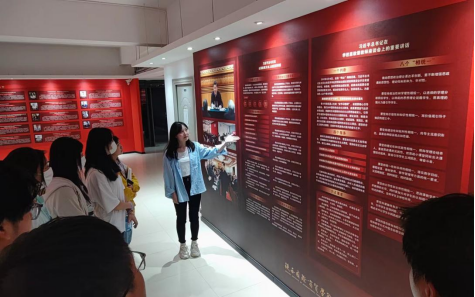 为引导学生树立正确的世界观、人生观和价值观,加强大学生思想政治教育,4月27日下午,国际经济学院学生党支部组织党员、退伍军人与结对宿舍分批走进学校思政文化长廊开展参观学习,党员及退役军人通过展板讲解、现场互动等多种形式分享了思政长廊的“故事”。