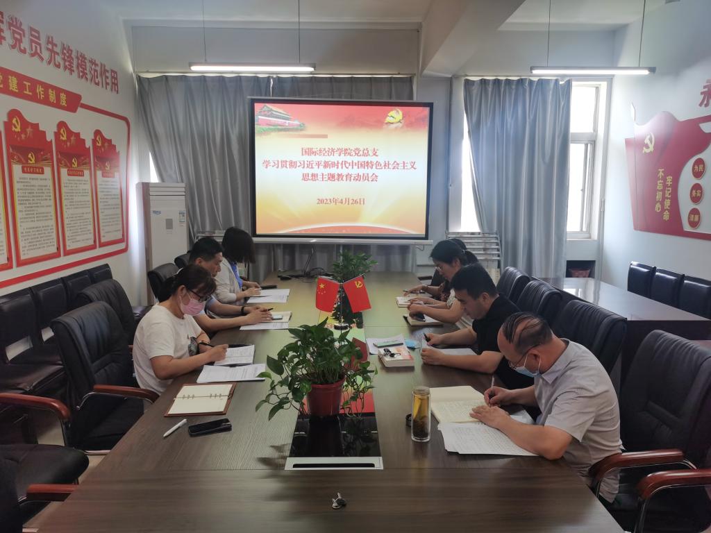 4月26日上午,国际经济学院党总支在学院党员活动室召开学习贯彻习近平新时代中国特色社会主义思想主题教育动员大会。学院领导班子、总支委员、支部书记参加会议。会议由党总支副书记荣超主持。