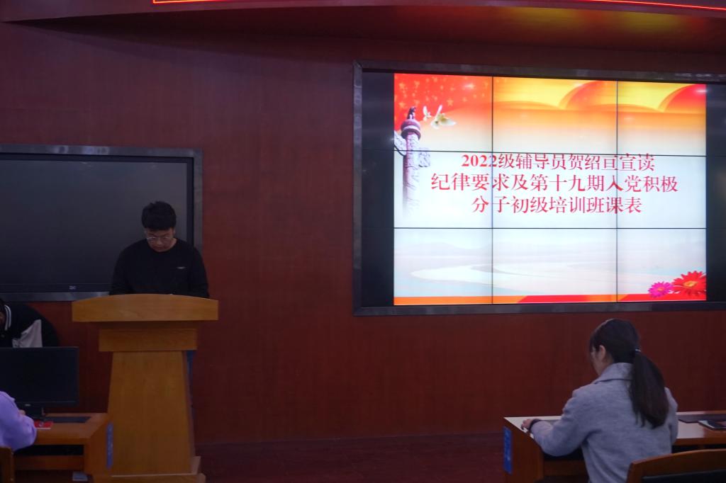 典礼上,辅导员贺绍亘首先宣读国际经济学院第十期党课纪律要求及党课课程安排,并对党课纪律和学习形式、结业考核等方面做了详细解读和要求。