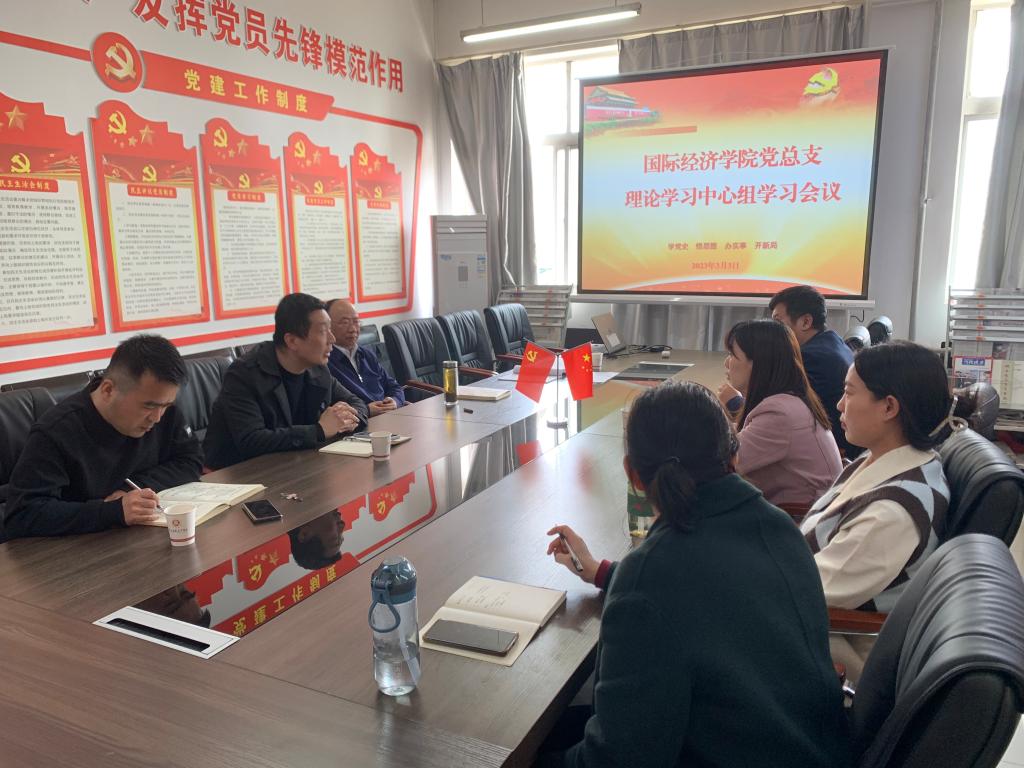 3月3日下午,国际经济学院党总支理论学习中心组在我院党员活动室召开理论学习中心组学习会议,党总支理论学习中心组成员以及相关科室负责人参加了会议。会议由党总支副书记荣超主持。