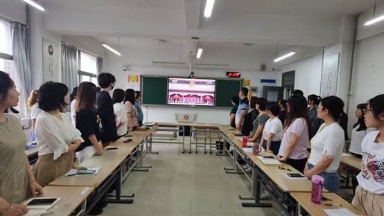 2021年7月1日上午8:00,中共中央在北京隆重举行庆祝中国共产党成立100周年大会,国际经济学院组织师生党员集中观看直播盛况。