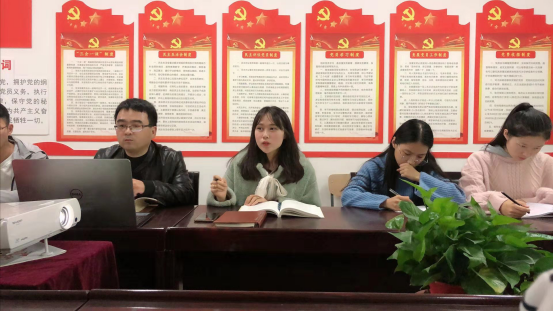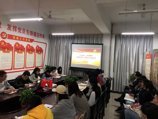 讨论环节中,学生党员郑媛媛同志讲到,大学生党员不应只关注娱乐新闻,对国内外的大事件也应该保持高度关注,旗帜鲜明的发表积极言论。在复杂的形势下,传播好中国声音,讲好中国故事,向世界展现一个真实的、立体的、全面的中国。学生党员刘雳谈到,要不忘初心、牢记使命,争当理论学习的排头兵,争当作风建设的排头兵,争当大学生党员的排头兵,争当担当有为的排头兵。