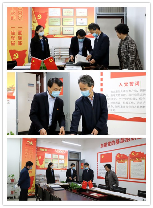 学校党委书记康亚国查阅学院样板党支部创建材料