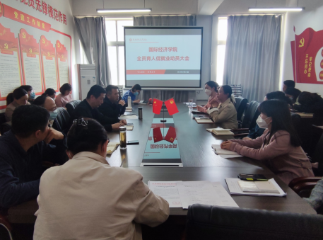 3月10日下午,国际经济学院在党员活动室召开全员育人促就业动员大会暨2023届毕业生就业工作推进会。学院领导班子全体成员、教研室主任、论文指导教师及全体辅导员参加会议。会议由院长冯明主持。