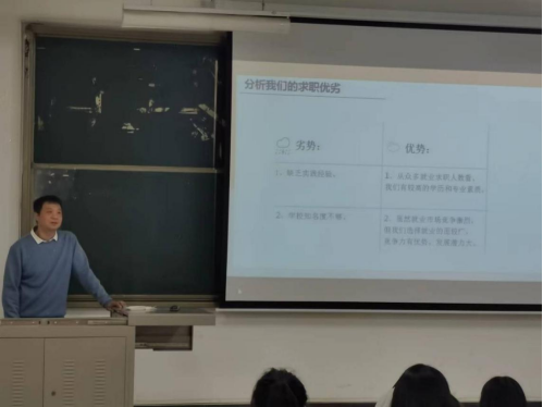 为贯彻落实党中央“稳就业”“保就业”决策部署,帮助毕业生做好就业准备,提升工作能力和水平,更好地执行高质量就业任务,2022年11月8日下午15时,国际经济学院在2教226教室召开2023届毕业生就业准备和求职技巧的培训。学院2023届全体毕业生参加会议,会议由2023届毕业生辅导员刘翔老师主持。