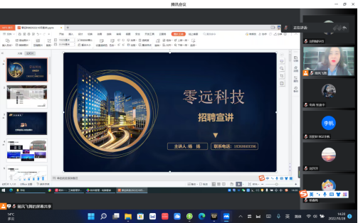 为切实做好2023届毕业生就业工作,缓解毕业生就业压力,大力构建毕业生与用人单位的交流。国际经济学院组织毕业生于10月28日下午在腾讯会议平台线上召开专场招聘会。本次邀请了浙江零远科技企业进行线上宣讲招聘,2023届毕业生参会。