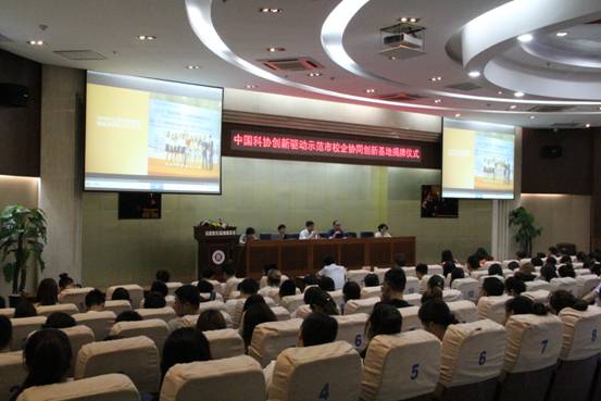 党的十八大明确提出创新驱动发展战略。高校作为国家创新体系的重要组成部分,把全面提升创新能力摆在高等教育综合改革的核心位置,为实施创新驱动发展战略和建设创新型国家贡献力量。为进一步提升我校创新能力,搭建好创新平台,6月29日上午,我校在学术报告厅隆重举行中国科协创新驱动示范市—校企协同创新基地揭牌仪式。咸阳市科学技术协会主席亚斌建、副主席苏蓉、部长陈华涛、学院院长王兴林、科技处副处长强选萍出席本次活动,会议由国际经济学院院长韦林珍主持。
