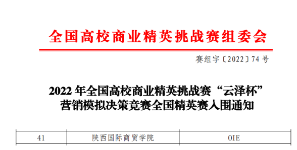 喜报 国际经济学院学生代表队在2022年全国高校商业精英挑战赛“云泽杯”营销模拟决策竞赛全国总决赛中再获佳绩