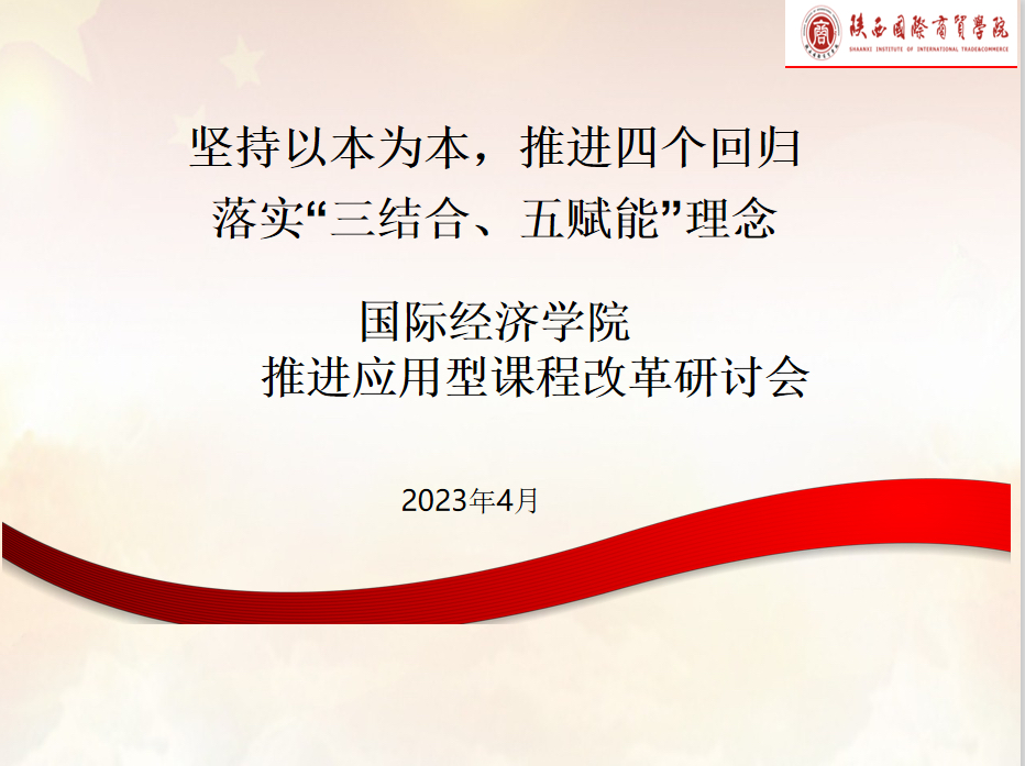 为贯彻落实我校开展的“2023年度课堂教学质量提升活动”,深化国际经济学院应用型课程的改革,不断提高应用型人才的培养质量,制订具体实施方案。4月4日下午,我院于西咸办公室召开了应用型课程改革研讨会,由执行院长冯明组织,各教研室主任、学生科科长、办公室主任参会。会议上冯明传达了4月份工作会议精神,并进行了安排部署。