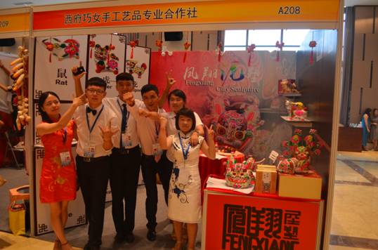 “凤翔泥塑”参赛队(由胡旭、刘毅、吴妮、王妍、江美燕、吴金科共6为同学组成)依托西府巧女手工艺品专业合作社的产品——十二生肖泥塑获二等奖
