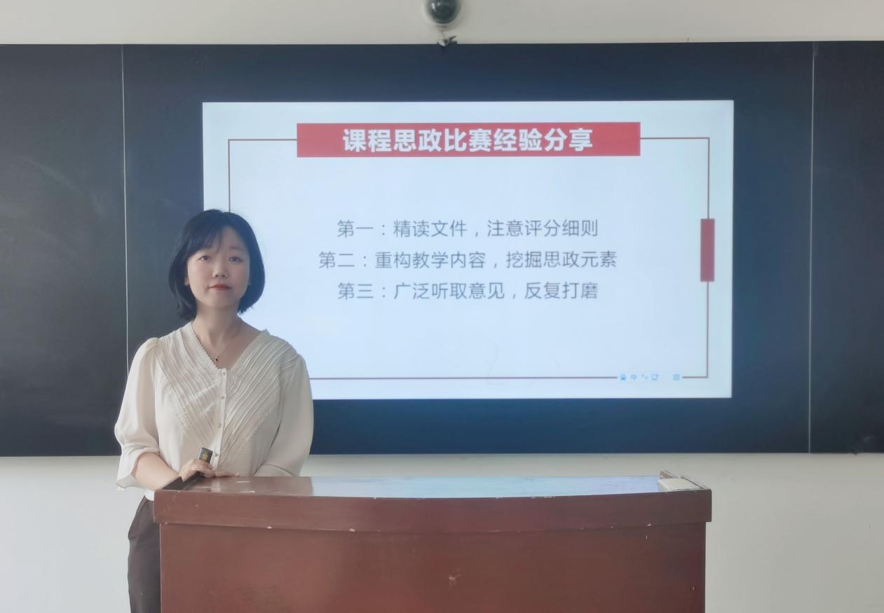 会上,金融教研室高珊老师,结合自己参加学校课程思政大练兵活动的获奖经历做了经验分享与交流。她强调,每次比赛都要精读比赛文件精神,特别注意评分细则的重要性。同时,以《应用统计学》的参赛课程设计作为案例,详细讲解了如何结合课程思政重构教学内容,挖掘思政元素;建议教师们应广泛听取同事的意见,反复打磨教学内容,才能获得更好的教学效果。参会教师就课程思政大练兵活动比赛存在的问题做了互动讨论,现场交流气氛热烈。
