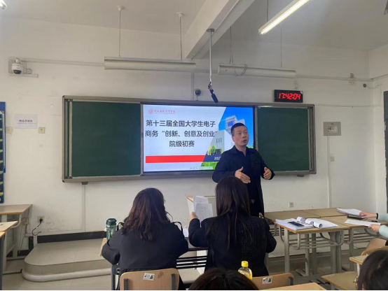 为激发大学生兴趣与潜能,培养大学生创新意识、创意思维、创业能力以及团队协同实战的精神。国际经济学院于3月30日下午在2J417教室组织开展第十三届全国大学生电子商务“创新、创意及创业”(以下简称三创赛)院级初赛选拔。学院院长冯明、创新创业教研室主任李宁馨、电子商务教研室胡媛、卞爱桢老师及参赛学生参加此次院赛选拔,比赛由学院电子商务教研室贺倩主持。