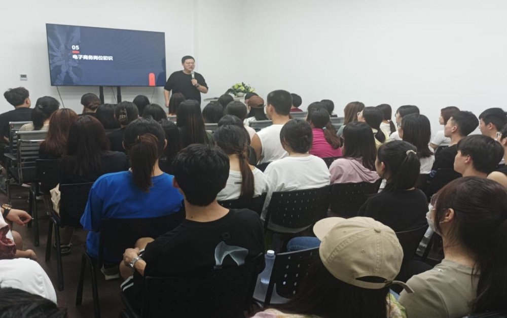 首先,西安新月信息技术有限公司陈总向同学们讲述了电子商务现实意义上的概念,结合学习到的理论知识延申到当前社会实践的含义,介绍了电子商务是以信息技术为手段,“电子”作为一种技术,“商务”是核心目的。然后,陈总结合当前国内电商企业和跨境电商行业的发展情况,详细地讲解了电子商务目前的就业前景、薪资待遇以及就业方向,并且表示电子商务专业在互联网时代背景下的薪资较高,可以更好地帮助同学们在今后找工作中找到合适的方向发展。