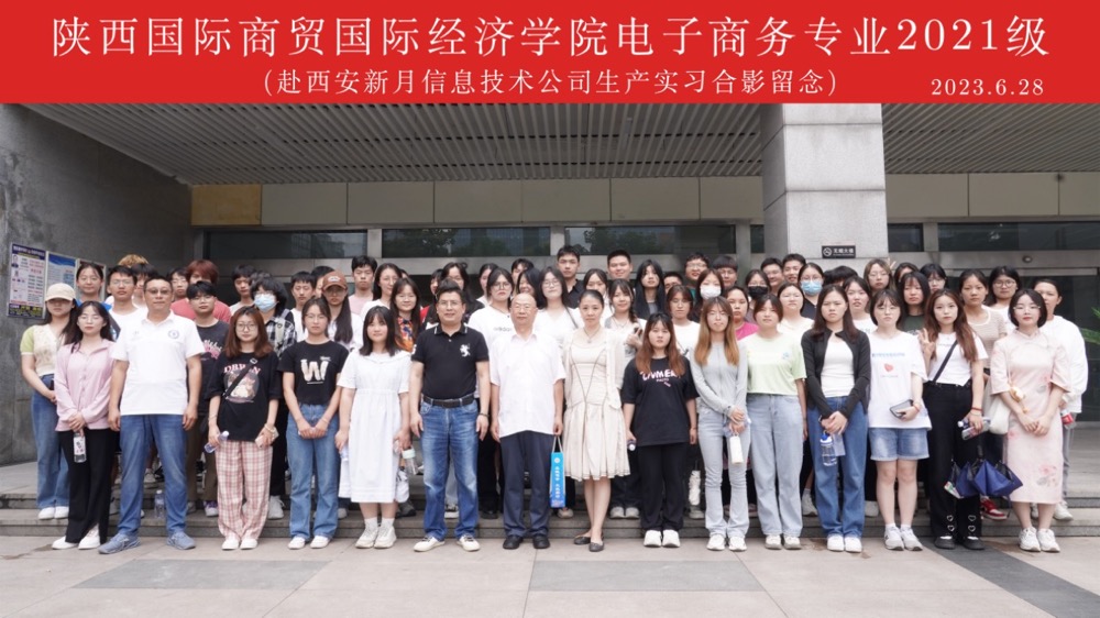 为了更好将课堂理论与实际相结合,提升学生的理论素养,提高学生的实践能力,让学生了解电商行业前沿发展方向。6月28日上午,在胡媛老师和陈伟老师的带领下,国际经济学院组织21级电子商务专业68名学生赴西安新月信息技术有限公司开展生产实习。