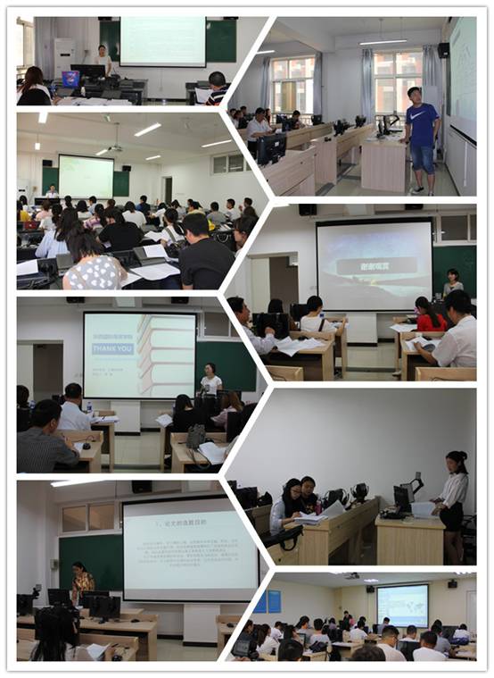 会议后,论文答辩正式开始。分布在10个答辩组的毕业生按照答辩顺序依次登台进行论文答辩,均采用PPT的形式进行汇报。在参加答辩之前,所有的同学就早已经过了开题报告、中期检查、重复率审核等几个阶段精心的准备。现在他们已经充满信心、精神饱满,神情自若,他们分别从论文的目的意义、研究对象与方法、结果与分析、结论与建议等方面进行阐述。随后评委根据学生陈述和论文本身,提出相关问题,毕业生就所提问题,给出回答,整体而言学生们思路清晰,回答较为准确和深入。