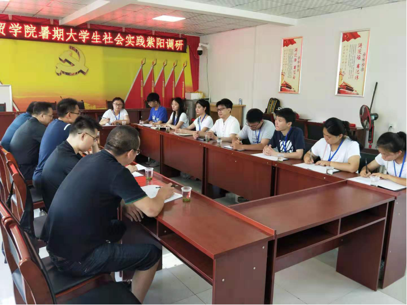 2019年7月13日,在紫阳县陈主任的以及周启清博士的带领下,赴安康紫阳社会实践调研队正式进行“三下乡”社会实践调研工作,首先我们第一站抵达兴隆村,在兴隆村村委委员会进行了陕西国际商贸学院暑假社会实践紫阳调研座谈会。