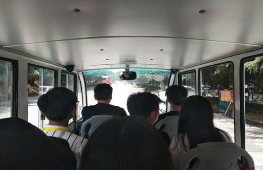首先,我们来到了风景优美的西京学院,乘坐校园观光车,我们一边领略校园美景,一边熟悉校园地理环境,以便顺利开展调研。