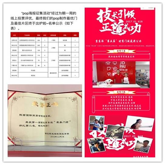 本次可以荣获全国奖,离不开这几年师生的辛苦积累。京东派校园实训店的学生们,将理论学习及时转化到现实实践和现实生产、服务中,不仅为学生提供快递自提货免邮费、送货上门、新奇特惠的商品体验、白条支付等服务,还与学校社团建立联系,为校园活动提供支持。京东派校园店也会不定期做优惠活动,争取给学生更多的优惠,让学生在拥有最优质网购体验的同时,享受更多的实惠。短短几年的时间里多次荣获区域优秀门店,POP制作二等奖,最美门店等等。