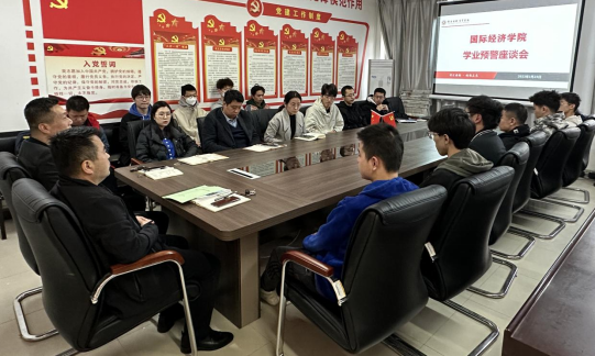 会议开始,书记荣超说明了本次会议的目的和意义,宣读了国际经济学院关于下发2022-2023学年第1学期学业预警名单的通知,并带领大家学习了我校关于毕业和学位授予的相关规定。他指出大家学习的机会成本很高,希望大家要充分认识和正确对待学习过程中遇到的问题和困难,主动思考,强化交流。同时,荣书记强调大家要积极解决和调整个人心理压力,适应不同阶段的专业学习任务。随后,学生们逐个反思了现阶段学业情况并进行自我剖析,针对存在问题和原因,承诺对以后的学习作出规划并积极落实,提升学习效率和效果。