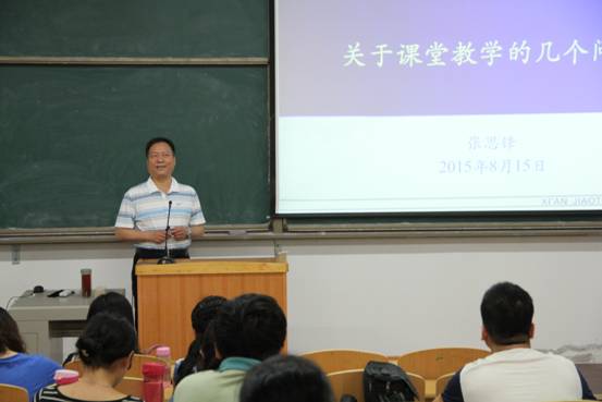 为了锻造高水平的讲课能力,8月19日上午,国际经济学院副院长张思锋教授在4J-103教室做了一场《关于课堂教学的几个问题》的精彩讲座。张副院长从课堂教学的地位和作用,课程设计,教学实施,处理好几个关系四个方面来教大家如何提高讲课能力。他认为:认真+方法=成功。作为高校教师,要上好每一节课,不仅要有认真的态度,还要有适合的方法。