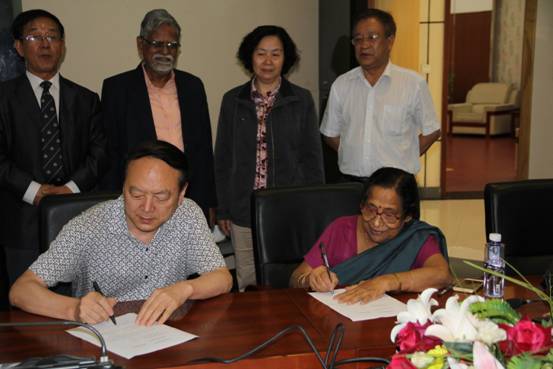 默罕迪教授和夫人毕迪尤特默罕迪博士分别代表奥利萨社会经济发展研究院和印度社会科学研究院与陕西国际商贸学院签订了战略合作协议。