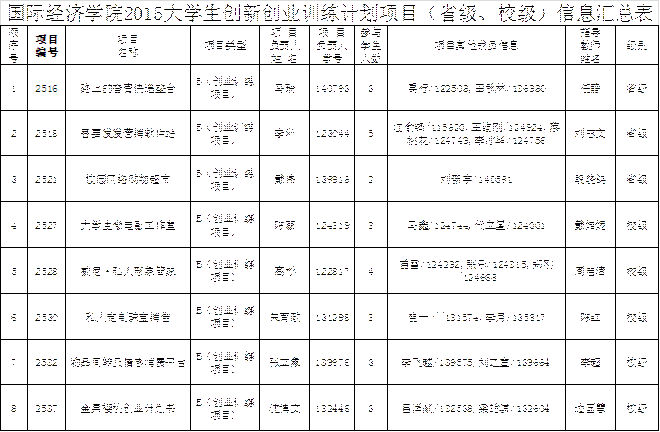国际经济学院2015大学生创新创业训练计划项目(省级、校级)信息汇总表 |