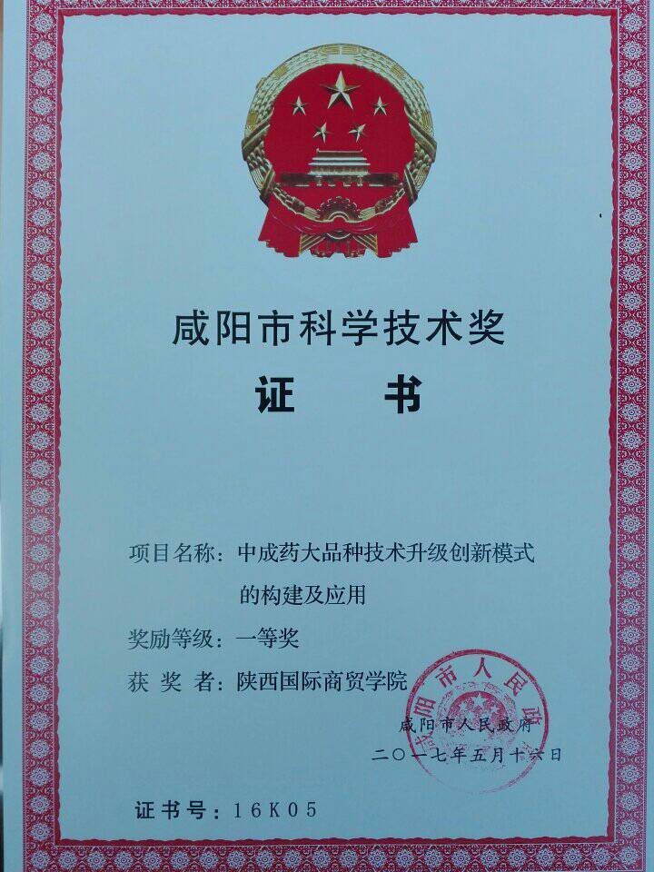 中成药大品种技术升级创新模式的构建及应用(咸阳市科技进步一等奖)