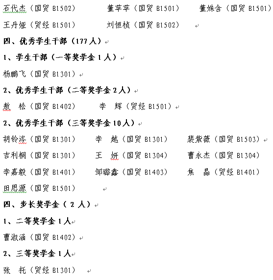 国际经济学院2015—2016学年先进集体、优秀学生、优秀学生干部、步长奖学金获奖学生名单公示