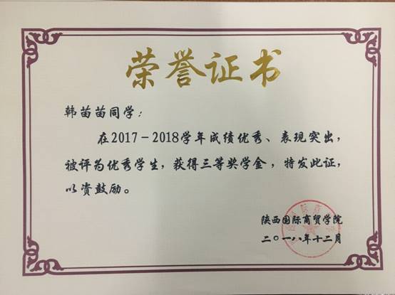 ——2017—2018学年“优秀学生三等奖学金”获得者 我院金融工程专业B1601班 韩苗苗
