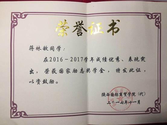 2016—2017学年“国家励志奖学金”获得者 我院国际经济与贸易B1603班 蒋林敏