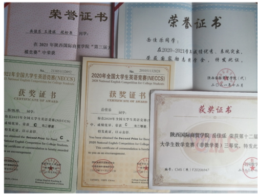 时光转瞬,我已成为应届毕业生中的一员。回首过往的岁月,点点滴滴都是努力奋斗后无悔的青春。大学四年,我顺利通过全国计算机二级考试、全国会计专业技术初级资格考试、大学英语CET-4和CET-6。其次自2019年9月入学以来,我先后获得2020年“外研社·国才杯” 全国英语阅读大赛二等奖、2020第十二届全国大学生数学竞赛(非数学类)三等奖、2020年和2021连续两年获得全国大学生英语竞赛C类二等奖、2021年大学生数学建模竞赛校赛一等奖、2021“外研社·国才杯”全国英语写作大赛一等奖和阅读大赛二等奖、2022年全国证券投资模拟实训大赛团体三等奖、2022年POCIB全国外贸从业能力大赛团体三等奖和个人三等奖,在2020—2021学年我获得国家励志奖学金、2021—2022学年我以成绩和综测并列专业第一获得国家奖学金。